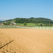 Doch auch die Vierbeiner kommen bei uns nicht zu kurz. Grosse Weideflächen, automatische Heuraufen und grosse Auslaufflächen laden zum Entspannen ein. Zusätzlichen Komfort bieten die separaten Wasch- und Schmiedeplätze.